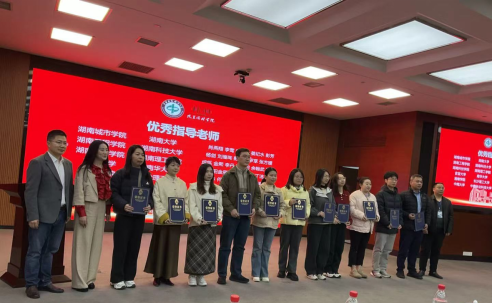 总结大会现场,组委会正式宣读获奖名单,包括竞赛作品奖、优秀指导老师奖及优秀组织奖。湖南城市学院建筑与城市规划学院参赛学子全部斩获奖项,实现 “零空手” 突破:6 项作品摘得一等奖,3 项作品获二等奖,3 项作品获三等奖,6 项优秀指导老师奖,创下学院在该赛事中的历史最佳战绩。与会领导与专家为获奖师生现场颁发证书并合影留念,彭建国书记代表学院对获奖师生表示祝贺时说到“此次获得好成绩离不开师生的共同努力,学院始终注重将前沿行业理念融入教学,通过以赛促学、以赛促练,培养学生的创新思维与实践能力,此次成果是教学成效的生动体现,也是学院深化教学改革、聚焦双碳人才培养的重要成果。