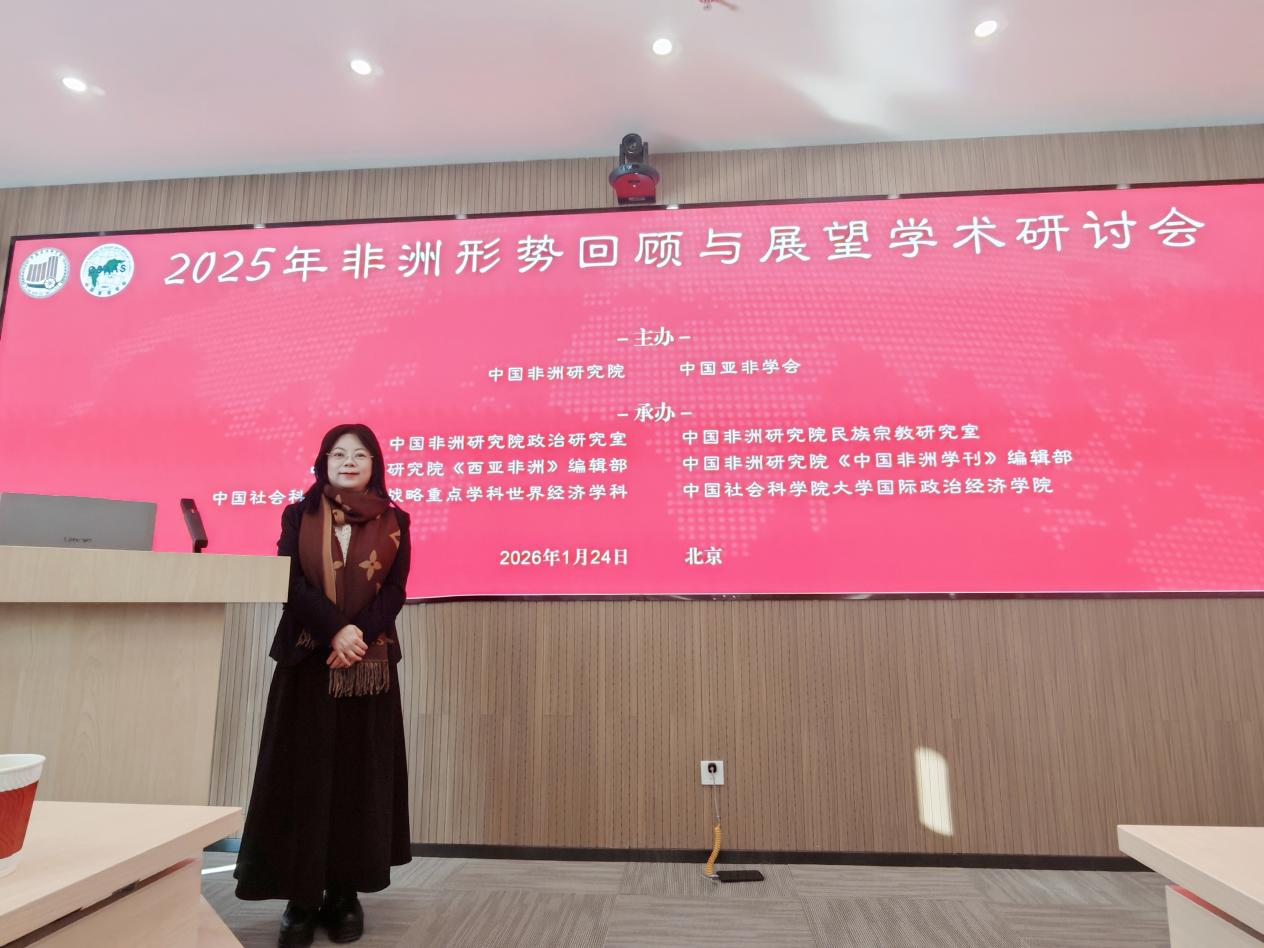 本网讯(通讯员 陈笑葵)1月24日,由中国非洲研究院、中国亚非学会联合主办的“2025年非洲形势回顾与展望”学术研讨会在北京召开。湖南城市学院副校长、内陆地区改革开放高地建设研究中心首席专家徐姝受邀出席会议,与来自外交部、中国社会科学院、北京大学、南京大学、北京外国语大学等单位的百余位非洲研究领域专家学者齐聚一堂,共话非洲发展新态势与国际合作新机遇。