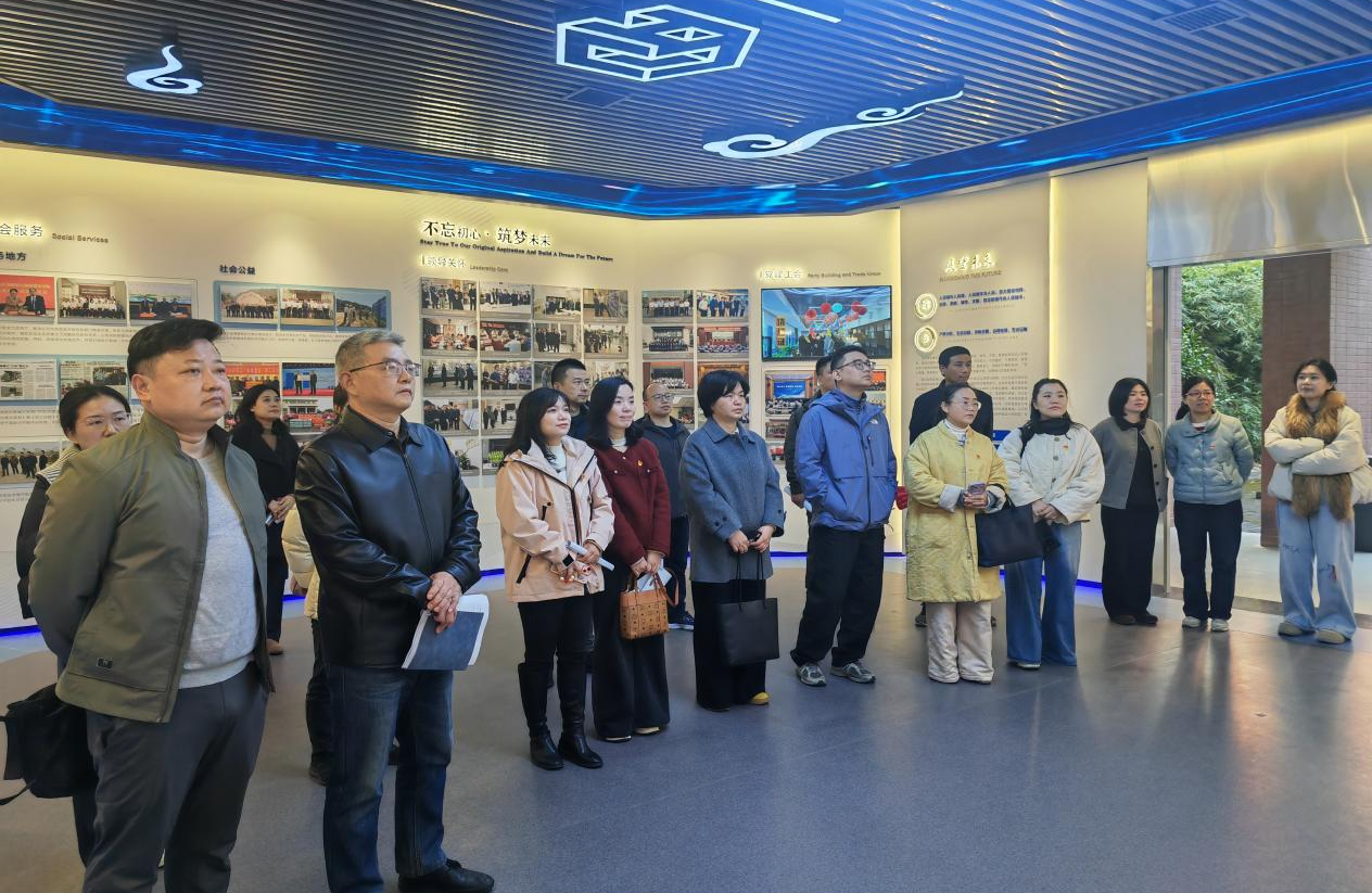 会议结束后,在湖南城市学院设计研究院有限公司负责人的带领下,双方党员共同参观了该公司的成果展厅与研发中心。作为湖南城市学院全资国有高校综合设计研究机构,其“产、学、研”深度融合的发展模式与丰硕成果,让参观人员深受启发。大家纷纷表示,要进一步加强校校、校企合作,将行业实践资源转化为教学育人优势,推动艺术设计与城乡规划领域的协同创新。